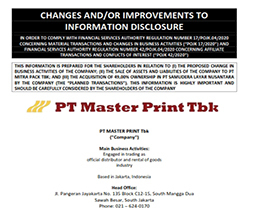 Pengumuman Negosiasi Sehubungan Dengan Rencana Pengambilalihan PT Master Print Tbk
