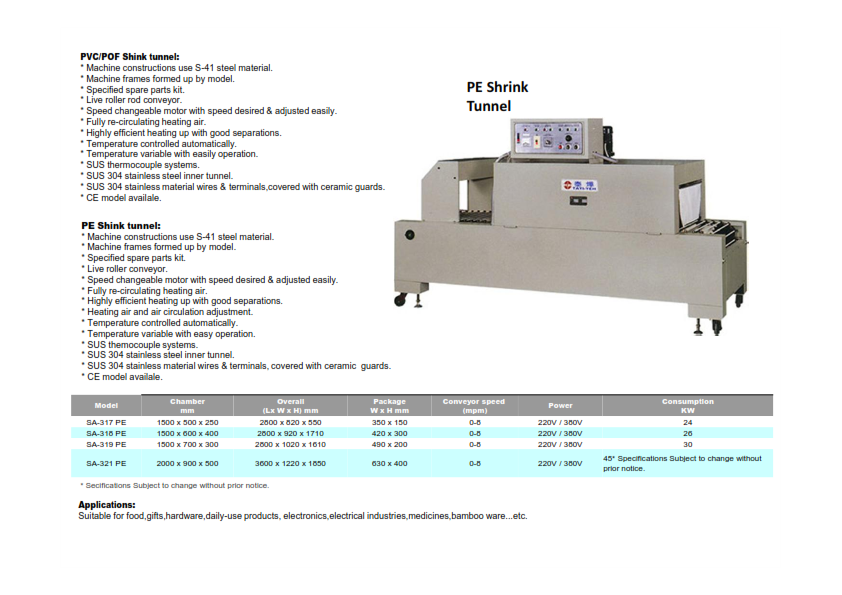 SA-313 PVC/POF (Mini type ),SA-316 PVC/POF ( standard type ), TY-37J POF ( High Speed )